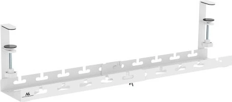 Конструкція оснащена наскрізними отворами, які полегшують прокладку кабелів і запобігають їх заплутуванню під столом. Естетичне виконання та міцні матеріали забезпечують довговічність і стабільність навіть при інтенсивному використанні. Завдяки своїй універсальності та функціональності органайзер дозволяє підтримувати порядок, підвищити безпеку та естетику кожного комп'ютерного або робочого місця.
