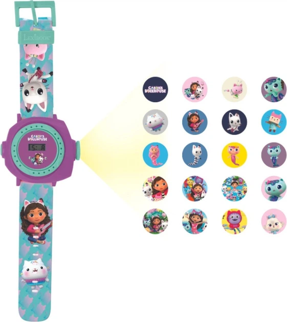 Цифровий проекційний годинник Lexibook Gabby’s Dollhouse — це унікальний гаджет для дітей, створений за мотивами популярного серіалу Ляльковий будиночок Габі. Годинник поєднує в собі функції практичного годинника та цікавої гри завдяки вбудованому проектору, який дозволяє відображати кольорові зображення на стіні або стелі.