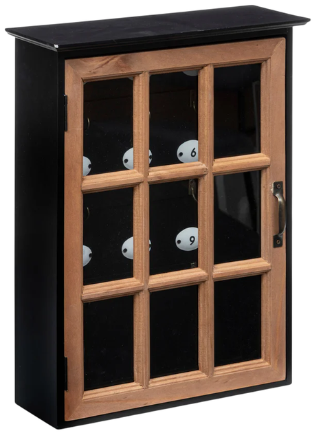 - Естетичний дизайн: Чорне покриття з дерев’яними акцентами робить скриньку MILANA стильним елементом інтер’єру. Прозоре скло дозволяє швидко знайти потрібні ключі, що підвищує зручність користування.