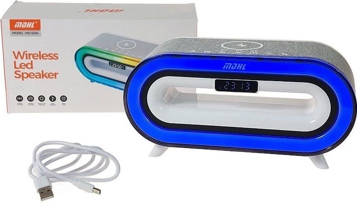 Бездротовий динамік MDHL — це багатофункціональний пристрій, що поєднує високу якість звуку з сучасним дизайном. Оснащений ефектним різнокольоровим світлодіодним підсвічуванням, він створює неймовірну атмосферу в будь-якій кімнаті. Зручний дисплей годинника та функція індукційної зарядки на верхній панелі корпусу роблять цей пристрій ідеальним доповненням для тумбочки або робочого столу, дбаючи про вашу улюблену музику та заряджений телефон щоранку. Завдяки технології Bluetooth динамік миттєво підключається до вашого смартфона, забезпечуючи чистий звук без зайвих кабелів. Елегантне оздоблення з тканини сірого кольору та унікальна овальна форма роблять пристрій ідеальним доповненням до будь-якого інтер'єру. У комплекті є USB-кабель, який забезпечує швидку зарядку, щоб динамік завжди був готовий до роботи, коли ви захочете розслабитися під звуки улюблених пісень.