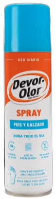 Devor Olor — спрей для ніг та взуття — це професійний засіб з потрійною дією, розроблений спеціально для людей, які страждають від надмірної пітливості та неприємного запаху. Завдяки вдосконаленій антиперспіраційній формулі спрей не тільки маскує запах, але й, перш за все, усуває його головну причину — бактерії, що розкладають піт. Вміст активних інгредієнтів, таких як хлоргідрат алюмінію, дозволяє ефективно звузити пори потових залоз, що забезпечує тривале відчуття сухості та свіжості навіть під час інтенсивних фізичних навантажень або багатогодинного носіння закритого взуття.