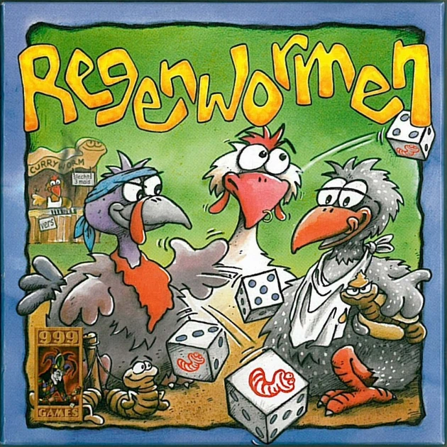 Гравці — голодні курчата, які шукають дощових черв'яків. Їх легко зловити, але тих, хто стає надто жадібним, можна обдурити! Курчата не проти красти дощових черв'яків з тарілок суперників, замість того, щоб витягувати їх із землі. «Дощові черв'яки» — це легка гра в кості, де гравці завжди скидають усі кубики з обраним символом, щоб зібрати смачну порцію дощових черв'яків. Іноді порцію вже забрав інший гравець, але це не має значення. Вони просто програють її! Кількість гравців: 2-7. Підходить для дітей віком від 8 років.