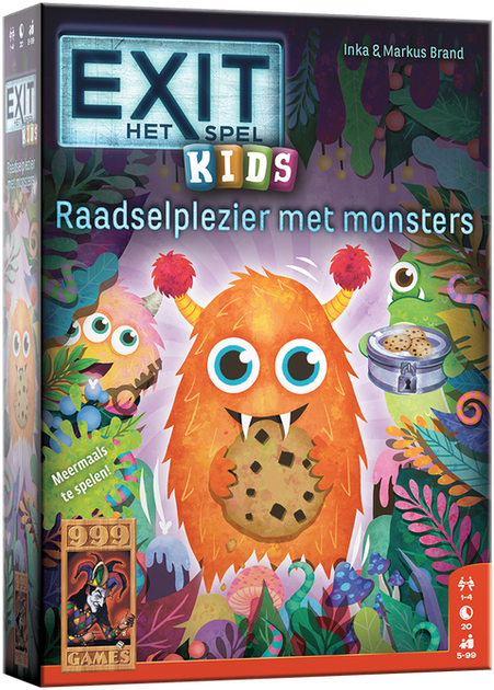 «Exit Kids: Monster Puzzle Game» – це унікальна версія гри «Exit». У цій версії для дітей віком від 5 років голодні монстри вкрали всі бляшанки з печивом у цьому районі. Вирушайте до Країни монстрів та розв’яжіть 6 різних головоломок. За кожну розв’язану головоломку ви отримаєте бляшанку з печивом, яку зможете відкрити в кінці гри. Оскільки 36 карток-головоломок можна комбінувати понад 40 000 способів, гру можна проходити повторно!