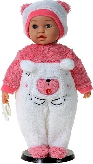 • Стильний та м’який костюм: Малюк виглядає неймовірно чарівно у двоскладовому рожево-білому костюмі ведмедика. М’яка шапочка з вушками доповнює образ – ідеальний костюм для спільних пригод у дитячій кімнаті. • Розвиток через гру: Рольова гра є ключовим елементом розвитку уяви. Догляд за лялькою допомагає вашій дитині зрозуміти щоденні ритуали та розвиває соціальні навички.