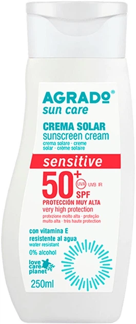 Сонцезахисний крем Agrado SPF 50+ забезпечує дуже високий захист від UVA, UVB та інфрачервоного випромінювання. Легка формула легко розподіляється та швидко поглинається, не залишаючи жирного блиску. Розроблений для світлої та чутливої шкіри, продукт ефективно зволожує та допомагає запобігти сонячним опікам.