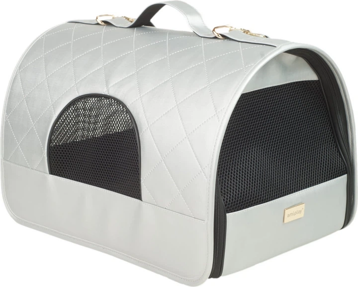 Переноска застібається на блискавку. Сітка з кожного боку забезпечує чудову вентиляцію, значно підвищуючи комфорт під час подорожі. Ручка зверху дозволяє легко переносити, а довгий ремінь дозволяє зручно перекидати її через плече.