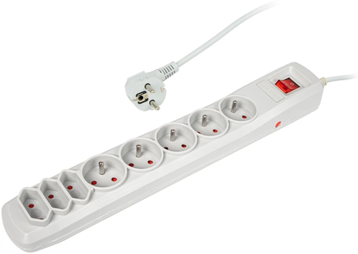 Фільтр ARMAC R‑8 забезпечує надійний захист електроприладів від перенапруги, короткого замикання та електричних перешкод. Він ідеально підходить для підключення комп’ютерів, моніторів, принтерів, модемів, телефонів, факсів, копіювальних апаратів та іншого електронного обладнання. Основні характеристики: - Система захисту: від перенапруги та короткого замикання- Автоматичний запобіжник: швидкодіючий 10 A / 250 V- Кількість розеток: 8 з заземленням- Захисні кришки: для мережевих розеток- Корпус: безпечний, самозатухаючий пластик, сірого кольору- Вимикач: двополюсний із підсвічуванням- Декларація CE Технічні параметри: - Номінальна напруга: 250 V, 50 Hz- Максимальне навантаження: 10 A (2500 W)- Поглинання енергії (загальне): 155 J- Струм витоку: 0.5 mA- Час відгуку: <25 ns- Максимальний струм розряду: 6 kA (L/N) – 8/20 µs- Максимальна робоча напруга Uc: 250 V, 50 Hz- Рівень захисту напруги Up: <1.2 kV (L/N)- Випробувальна напруга Uoc: 4 kV Фільтр ARMAC R‑8 поєднує функціональність і безпеку: автоматичний вимикач, захист від перенапруги та наявність підсвіченого двополюсного перемикача забезпечують надійну та зручну експлуатацію у домашніх і офісних умовах.