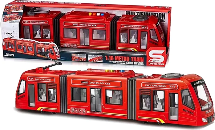 Czerwony tramwaj z dźwiękiem i światłem to wyjątkowa zabawka, która z pewnością zachwyci każdego małego miłośnika miejskiego transportu. Model został wykonany w skali 1:16 i wyposażony w realistyczne detale – od przeszklonych okien i otwieranych drzwi po nadruki przypominające prawdziwy pojazd komunikacji miejskiej.