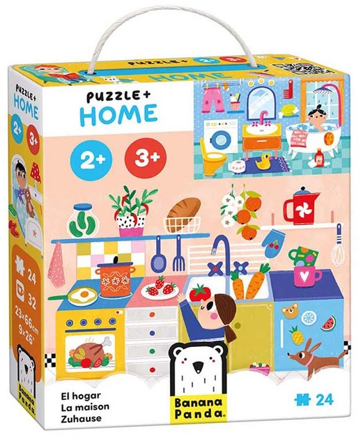 «Домашній пазл» – це унікальний навчальний набір для юних дослідників, що містить великий пазл із 24 частин, 32 додаткові плитки та путівник, повний ідей для ігор, які можна легко адаптувати до здібностей вашої дитини.