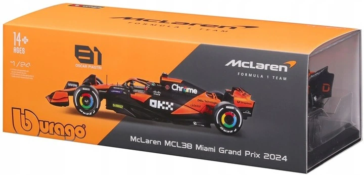 Ця модель зображує гоночний автомобіль McLaren MCL38 сезону Формули-1 2024 року. Мініатюра відтворює автомобіль, яким керував Оскар Піастрі. Аеродинамічні елементи кузова виготовлені з високою точністю. Яскраві кольори команди надають моделі динамічного характеру. Металева конструкція забезпечує міцність та надійність. Реалістичні слік-шини відображають трековий дизайн автомобіля. Ретельно нанесені логотипи спонсорів підвищують автентичність. Масштаб 1:24 дозволяє повною мірою оцінити деталі дизайну. Модель чудово виглядає як частина колекції гоночних автомобілів Формули-1, що робить її ідеальним вибором для шанувальників McLaren. Мініатюра символізує сучасні технології та найвищий рівень конкуренції. Це яскраве доповнення до будь-якої колекції автоспорту.