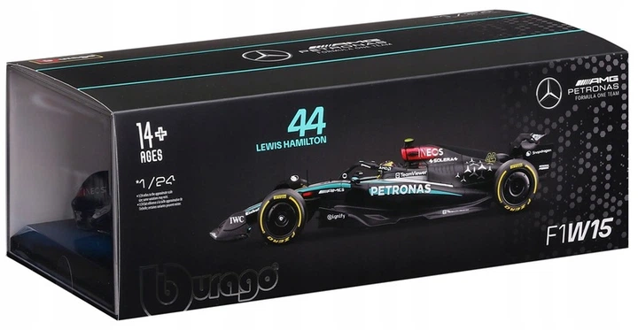 Колекційна модель Bburago зображує гоночний автомобіль Mercedes AMG Формули-1 Льюїса Хемілтона в масштабі 1:24. Ця високодетальна репліка точно відтворює кожен елемент автомобіля. Кузов зберігає характерні кольори команди Mercedes AMG та логотипи спонсорів. Модель виготовлена з високоякісних матеріалів, що забезпечує довговічність та вишуканий зовнішній вигляд. Кожна деталь, від дисків до спойлерів, ретельно продумана. Модель чудово виглядає на полиці або у колекційній вітрині. Масштаб 1:24 робить її вражаючою та яскравою. Це ідеальний подарунок для шанувальників Формули-1 та автолюбителів, дозволяючи їм відчути гострі відчуття гонок та атмосферу гоночної траси. Ця модель поєднує в собі пристрасть до автоспорту та колекціонування в одній привабливій формі. Кожен шанувальник оцінить її реалістичну деталізацію та естетично приємне оздоблення. Це унікальна модель, яка прикрасить будь-яку колекцію гоночних автомобілів.
