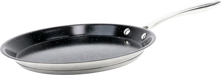 - Інноваційне антипригарне покриття запобігає пригоранню та полегшує перевертання млинців.