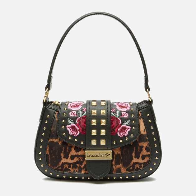 Стильна середня сумка крос-боді через плече Braccialini Rock, виготовлена з поліуретану. Має прямокутну форму та зручний середній розмір, що робить її ідеальною для щоденного використання. Оснащена довгими та короткими ручками, а малюнок на матеріалі додає образу оригінальності та сучасного стилю. Магнітна застібка забезпечує швидкий доступ до вмісту, а один основний відділ дозволяє розмістити всі необхідні речі.