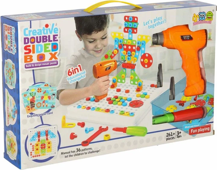 Gra polega na wkręcaniu śrub o różnych kolorach w deskę za pomocą śrubokręta. Twoje dziecko poczuje się jak prawdziwy majsterkowicz. Z klocków można tworzyć różne wzory, figury i kształty. Gra poprawia zręczność rąk i pobudza wyobraźnię dziecka.