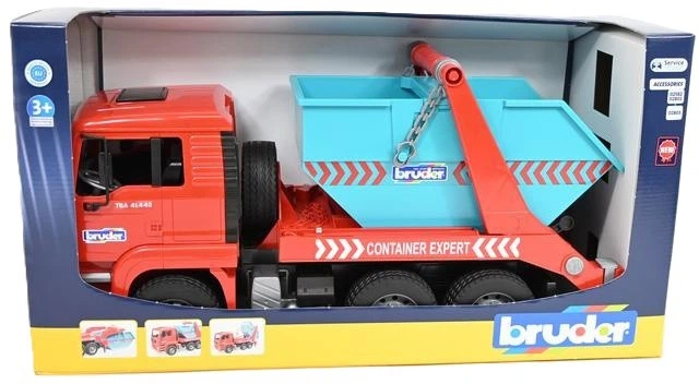 Ciężarówka Bruder Man TGA to realistyczna zabawka dla miłośników pojazdów transportowych. Wyposażona w kontener hakowy, który można podnosić i opuszczać. Wysokiej jakości materiały zapewniają trwałość i bezpieczeństwo zabawy. Koła obracają się swobodnie, a kabina posiada szczegółowe wykończenia. Zabawka rozwija zdolności manualne i wyobraźnię przestrzenną dziecka. Kontener pozwala na przewożenie małych przedmiotów lub innych pojazdów. Ciężarówka wygląda jak prawdziwy pojazd MAN, co zwiększa realizm zabawy. Idealna do zabawy zarówno w domu, jak i na świeżym powietrzu. Stabilna konstrukcja umożliwia długotrwałe użytkowanie. Zabawa ciężarówką uczy planowania i kreatywności. Doskonały prezent dla chłopców i dziewczynek zainteresowanych motoryzacją. Ten model łączy zabawę z nauką i fascynującym światem pojazdów.