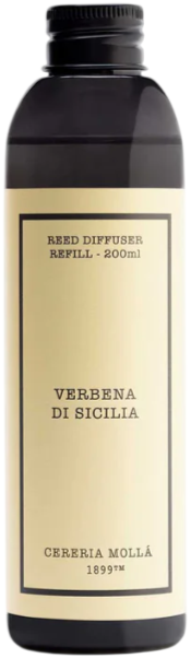 Наповнювач для аромадифузора Cereria Molla Verbena Di Sicilia призначений для повторного наповнення ароматичного дифузора і дозволяє легко продовжити використання улюбленого домашнього аромату. Композиція розкривається яскравими і іскристими цитрусовими нотами, які наповнюють простір енергією і свіжістю, поступово переходячи в освіжаючі відтінки вербени. Завдяки насиченій формулі аромат поступово і рівномірно поширюється по приміщенню, створюючи атмосферу легкості, чистоти і затишку в будинку, офісі або зоні відпочинку. Зручний формат дозволяє швидко наповнити порожній флакон дифузора і знову насолоджуватися елегантним, свіжим і бадьорим ароматом, який наповнює простір відчуттям сонячного середземноморського літа.