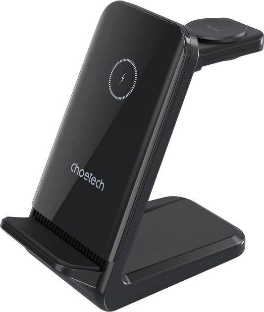 Бездротовий зарядний пристрій 3-в-1 15W чорний Choetech (T608-F) забезпечує швидке та безпечне заряджання пристроїв.
