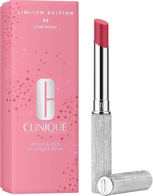 Pomadka Clinique Almost Lipstick to kultowy produkt, który zasłynął dzięki swojej unikalnej formule łączącej właściwości balsamu do ust z przezroczystym, adaptującym się kolorem. Odcień 44 Pink Honey to lżejsza i bardziej różowa wariacja na temat słynnego Black Honey.