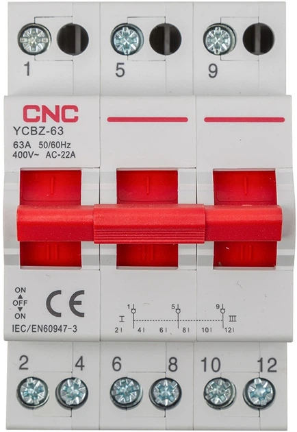 Przełącznik modułowy 3P, 40A, 1-0-2 to idealne rozwiązanie do przełączania źródeł zasilania, na przykład między siecią a źródłem rezerwowym (agregatem lub systemem UPS). Przełącznik może załączać, obciążać i rozłączać obwód w normalnych warunkach, pełniąc funkcję rozłącznika.