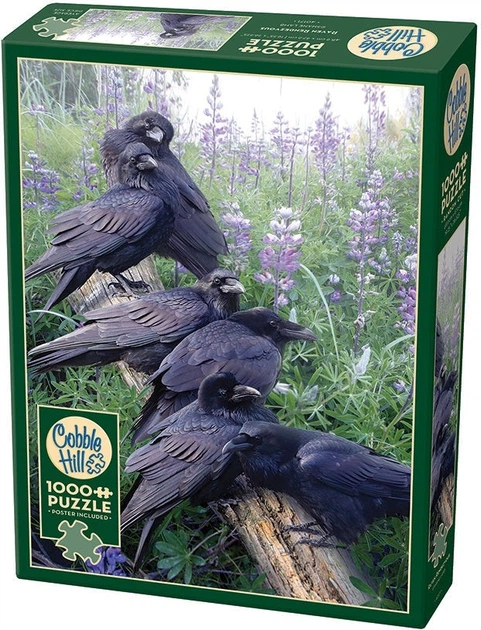 Знову настав час для Збору Воронів на Трав'янистих Полях. Сподіватимемося, що фіолетові квіти — це не вовча гадюка, також відома як отруйна вовча гадюка. Вирушайте у пригоду з цим випадково вирізаним пазлом Коббл-Гілл з 1000 елементів, який містить плакат із довідкою.