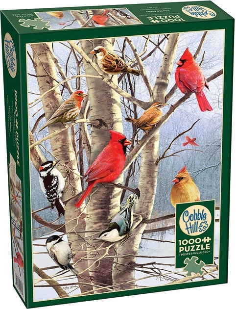 Звичні підозрювані з книги Джордано «Птахи зими» зібралися на ранкову зустріч високо на голому дереві над засніженим полем. Які пригоди чекають на них сьогодні? Цікавий повзик нашорошив вуха, прагнучи почути, що задумала синиця. Це затишна сцена, де пернаті друзі обмінюються секретами туманного зимового ранку. З їхнім жвавим балаканиною та м’якою тишею снігового світу внизу, ця чарівна головоломка неодмінно зігріє ваше серце!