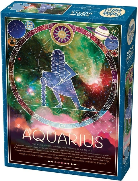 Кожен пазл зодіаку з 500 елементів містить сузір'я, символ, планету-управителя, полярність, шестерні та камені.