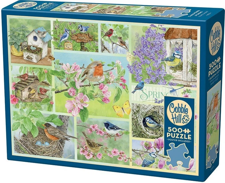 «Садові птахи навесні» – один із чотирьох пазлів серії, що складаються з 500 елементів. Насолоджуйтесь ним окремо або збирайте пазли кожної пори року та розкладайте їх парами, щоб створити одну цілісну картину, якою можна насолоджуватися цілий рік. Акварельний живопис Джейн Шаскі створює ніжну палітру, що втілює невинність та ніжний шарм. Ця пора року святкує гніздування малинівки у своєму гнізді з яєць, пурхання бджіл, метеликів та бабок, веселий спів блакитної сойки та прекрасні рожеві пелюстки, що прикрашають пишне зелене листя дерев.