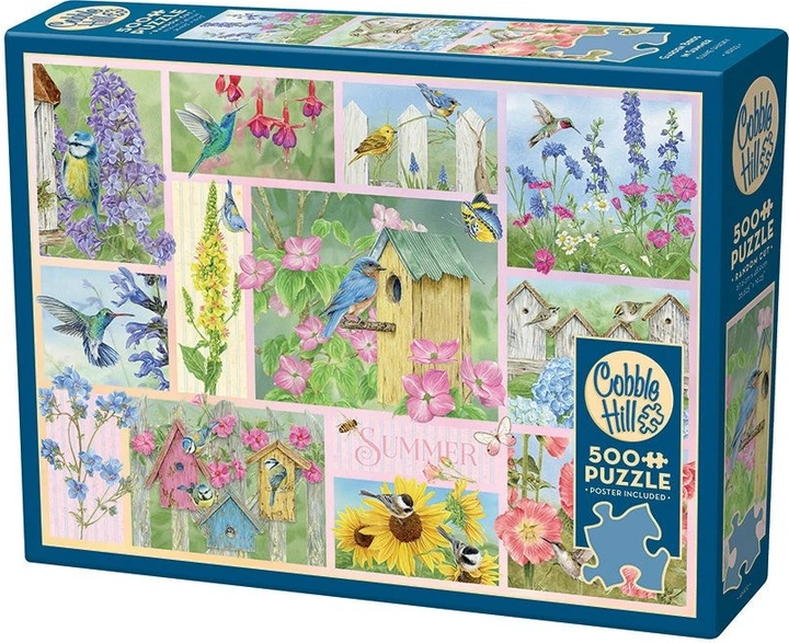 Краса природи жива та здорова, коли ми святкуємо акварельне мистецтво Джейн Шаскі в картині «Літні садові птахи». Колібрі зайняті нектаром прекрасних квітів у розквіті. Численні годівниці запрошують птахів усіх порід на бенкет, забезпечуючи їх енергією, щоб насолодитися насиченим майбутнім днем. «Літні садові птахи» – один із чотирьох пазлів із 500 елементів із серії. Пазли можна складати окремо або збирати кожну пору року та розкладати їх парами, щоб створити одну цілісну картину, якою можна насолоджуватися цілий рік.