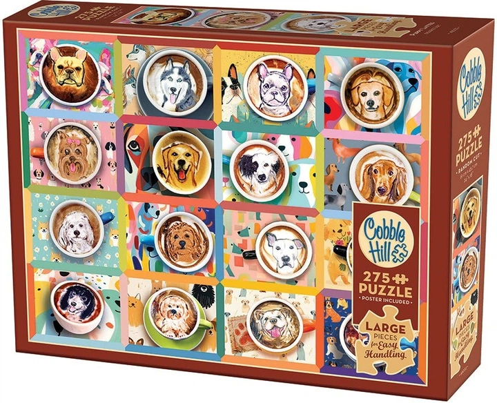Пазл «Цуценя Латте» – це зворушливий пазл із 500 елементів, у якому зображені цуценята всіх порід, кожне з яких чудово зображене в техніці лате-арт та розміщене у своєму чарівному оточенні. Оточений барвистими, грайливими фонами, кожен сценка випромінює тепло та індивідуальність, що робить цей пазл чудовим задоволенням як для любителів собак, так і для кави. Це затишний та веселий спосіб насолодитися солодкістю цуценят, потягуючи улюблений напій!
