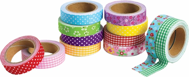 Декоративна стрічка Colorations – це матеріал для рукоділля, про який ви ніколи не підозрювали! Цей набір містить 12 рулонів справжньої тканинної стрічки. Кожен рулон нерозрізаний і має довжину 4 метри. Кожен рулон тканинної стрічки має свій власний барвистий квітковий, клітинчастий або горошок візерунок. Кольори стрічки охоплюють усю веселку: фіолетовий, синій, зелений, жовтий, рожевий та червоний. Використовуйте тканинну стрічку для всіляких проектів, таких як фотоальбоми, рамки для картин, кольоровий папір, дерев'яні вироби та все інше, до чого потрібно приклеїти стрічку! Тканинна стрічка Colorations виготовлена зі справжньої тканини. Кожен рулон має паперову основу – просто відклейте та приклейте! Усі продукти Colorations нетоксичні та безпечні для дітей.