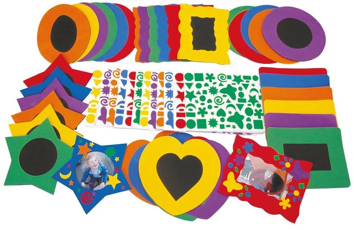 - Що ви отримуєте: 36 рамок з пінопласту EVA у формі сердець, зірок, овалів тощо. Набір містить понад 950 самоклеючих пінопластових фігур для декорування. Кожна рамка має виріз для стандартних фотографій, але потрібен виріз, щоб він відповідав формі рамки.