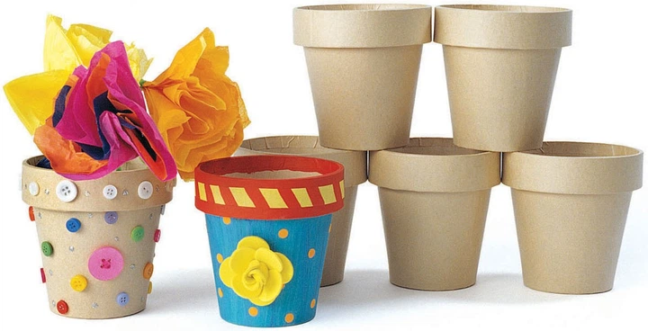 Ці міцні кашпо з пап'є-маше стануть чудовими подарунками, їх легко прикрасити фарбами, маркерами, крейдою та олівцями.