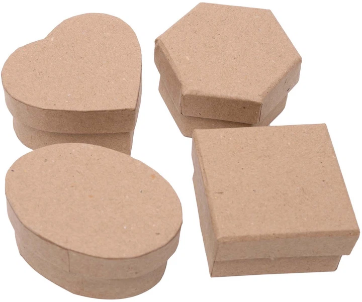Створіть власні унікальні прикраси з цими 12 міні-коробочками з пап'є-маше. Вони бувають різних форм, таких як серця, овали, квадрати та шестикутники. Ідеально підходять для творчого дня або дитячої вечірки!