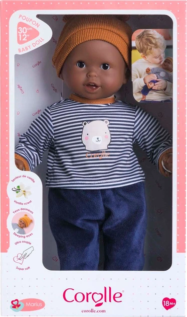 Маріус ідеально підходить для ранніх рольових ігор: його м’яке, схоже на дитяче тіло, зручно тримати в маленьких ручках. Коли ви кладете його спати, його темні очі закриваються. Він одягнений у м’яку піжаму та шапочку з чарівними вушками ведмедика. І, звичайно ж, від нього пахне фірмовим ванільним ароматом Королле!