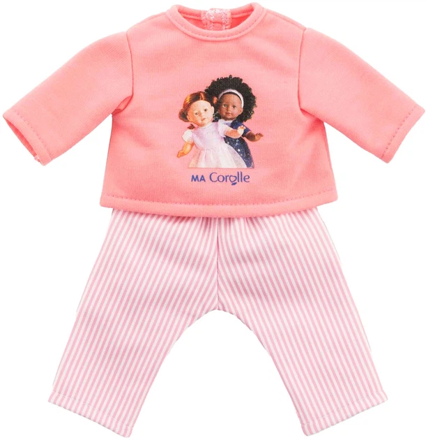 Час спати, і для вашої ляльки Королле зростом 36 см потрібний рожевий піжамний комплект із двох предметів. Ця чарівна піжама має гарний принт із зображенням ляльок Ма Королле на довгих рукавах. Виготовлений з м'яких та міцних матеріалів, цей комплект легко одягати завдяки липучкам, що ідеально підходить для маленьких ручок!