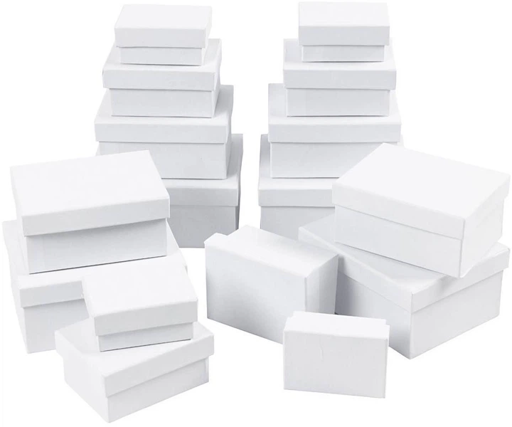 Набір прямокутних білих картонних коробок. Комплект містить 4 розміри.