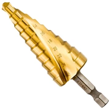 Діаметри — 8.10.12.14.16.18.20.22.24.25 мм Діаметр хвостовика — 6.35 мм Кількість кроків — 10. Підходить для матеріалів: Конструкційна сталь Залізні та кольорові метали Листовий метал Пластики.