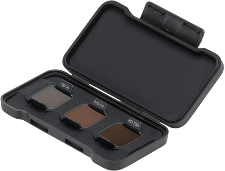 Набір включає три фільтри з різною щільністю: ND16, ND64 та ND256. Кожен фільтр забезпечує різний рівень затемнення для точного налаштування експозиції під конкретні умови освітлення.