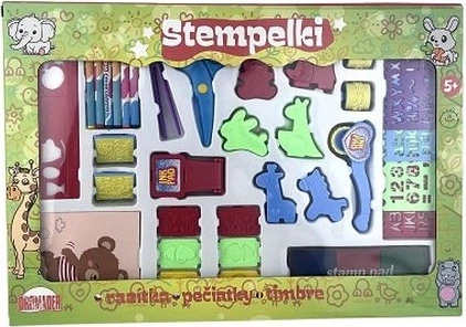 Цей набір штампів у коробці ідеально підходить для дітей, які люблять творчі ігри та створення власних шедеврів. Усередині ви знайдете різнокольорові штампи у формі різних тварин, чорнило, маркери, ножиці, трафарети та блоки для відбиття візерунків та літер. Набір дозволяє весело малювати, штампувати та декорувати – ідеально підходить для створення листівок, вітальних листівок та картин.
