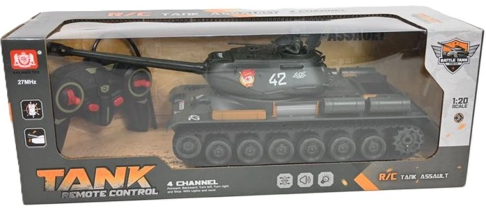 Іграшковий транспортний засіб керується за допомогою пульта дистанційного керування з частотою 27 МГц, що забезпечує стабільне з'єднання та легке керування. Завдяки міцній пластиковій конструкції танк може витримувати інтенсивну гру як у приміщенні, так і на вулиці.