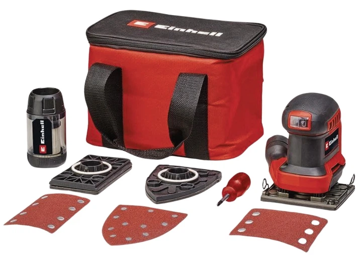 Einhell для вологого/сухого прибирання. Перемикач увімкнення/вимкнення захищений від пилу. Компактна конструкція шліфмашини з поверхнями з м’якою накладкою забезпечує комфортне використання та оптимальне керування орбітальною шліфувальною машиною. Акумуляторна шліфувальна машина TEOS 18/113 3X LiSolo поставляється без акумулятора та зарядного пристрою.