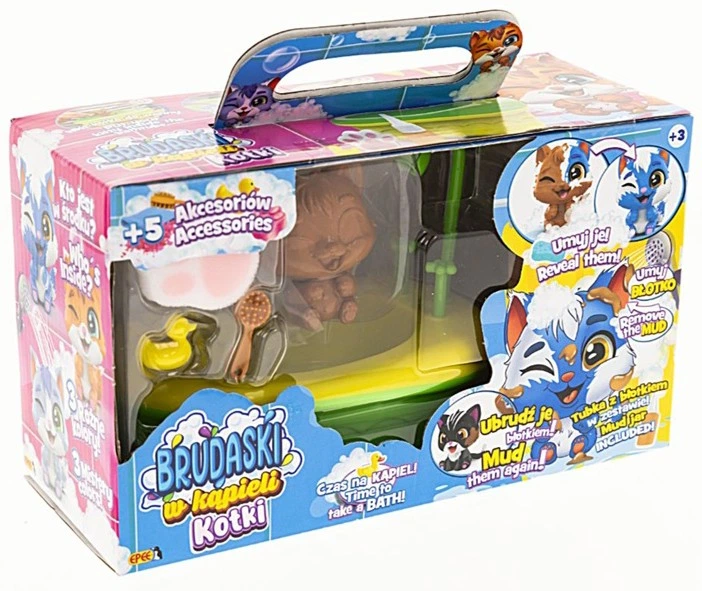 Забруднися, помийся та повтори! Знайомтесь із «Часом брудної ванни» – колекцією чарівних кошенят, які обожнюють гратися в багнюці, але ще більше люблять розслаблюючу ванну. Завдяки унікальному покриттю фігурок діти можуть неодноразово «забруднювати» свого улюбленця спеціальною багнюкою, а потім використовувати справжню ванну з розпилювачем, щоб відновити його первозданну чистоту. Це гра, яка навчає емпатії та щоденним ритуалам найрадіснішим чином!