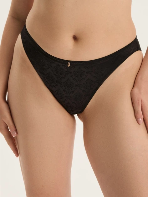 Жіночі трусики бразиліана Esotiq Charm поєднують витончену графічність та м’якість сучасних матеріалів. Передня частина вирізняється акуратною лінією, яку формує жакардовий візерунок у тон, надаючи моделі структурності та візуальної виразності. Бічні деталі залишаються вузькими та делікатними, м’яко підкреслюючи лінію стегон і забезпечуючи зручне прилягання. Продуманий виріз створює плавний і привабливий силует, акцентуючи лінію ніг без порушення балансу форми. Задня частина має гладку поверхню з м’яким завершенням по краю, що додає виробу охайності та забезпечує комфортну посадку під одягом. Основні тканини, що поєднують поліестер, поліамід та еластан, гарантують еластичність, приємність на дотик та збереження форми під час носіння. Ластовиця з бавовни створює додатковий рівень гігієнічності та комфорту, роблячи модель ідеальною для щоденного використання.