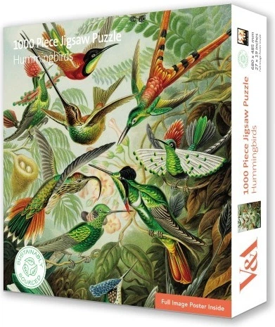 Цей високоякісний пазл від Flame Tree з 1000 елементів повністю виготовлений з паперу, картону та пакета, сертифікованих FSC, з міцними елементами та без термоусадочної плівки. Цей пазл з 1000 елементів, що зображує чарівну картину «Колібрі» Ернста Геккле, задовольнить вашу потребу в складних завданнях.