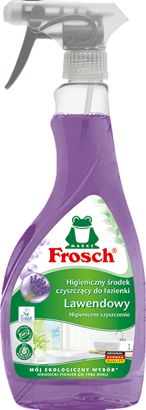 Frosch Лаванда — це екологічний засіб для чищення ванної кімнати та туалету з приємним ароматом лаванди, що ефективно видаляє забруднення, залишки мила, водні плями та наліт каменю, залишаючи поверхні гігієнічно чистими та свіжими.