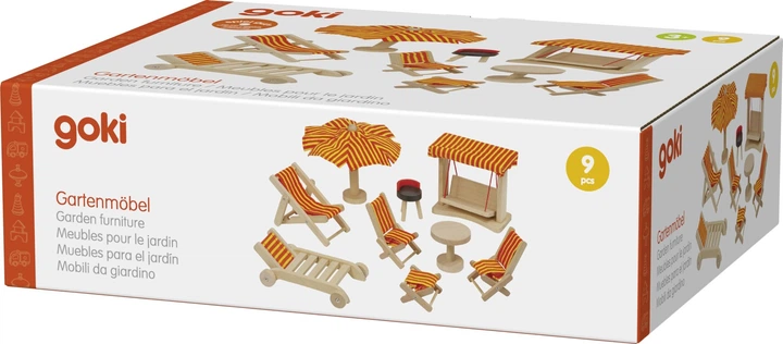 Meble ogrodowe dla lalek Goki Seria A drewniane 9 elementów 5299221 (4013594519137)