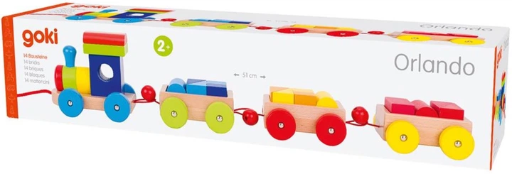 Набір дерев'яних блоків Goki Train – це конструкторська та розвивальна іграшка, яка дозволяє дітям зібрати барвисту модель поїзда, а потім гратися з нею як з транспортним засобом.