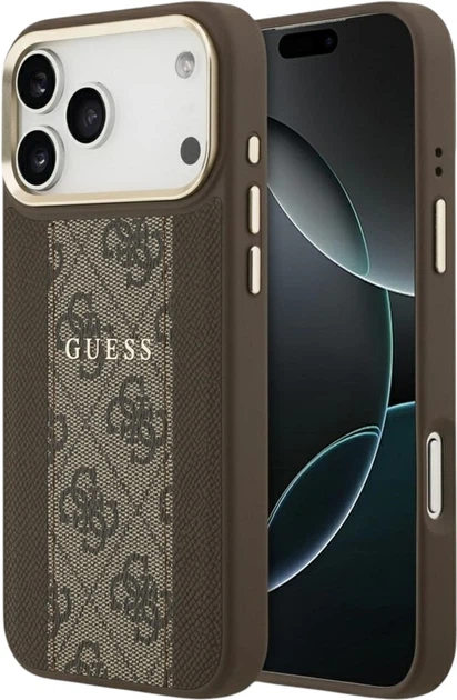 Ексклюзивний захисний чохол від відомого бренду Guess — це поєднання елегантності та стилю на найвищому рівні. Поверхня чохла покрита елегантною екошкірою, урізноманітнена центральною смугою з характерним візерунком 4G. Рамка камери та кнопки оздоблені золотим кольором, що підкреслює розкішний характер аксесуара. У центральній частині чохла знаходиться витончений логотип Guess, яке доповнює елегантний дизайн. Це ідеальне поєднання функціональності та елегантного дизайну, яке не тільки забезпечить чудовий захист вашого телефону, але й перетворить його на модний аксесуар.