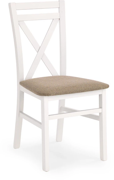Створіть ідеальний інтер'єр зі стільцем Dariusz, який поєднує в собі класичну елегантність та практичність. Цей білий дерев'яний стілець із Х-подібною поперечною спинкою – чудовий вибір для тих, хто шукає стильний та функціональний предмет меблів. Оббитий бежевим сидінням, він забезпечує комфорт та зручність для будь-якої сервіровки столу.