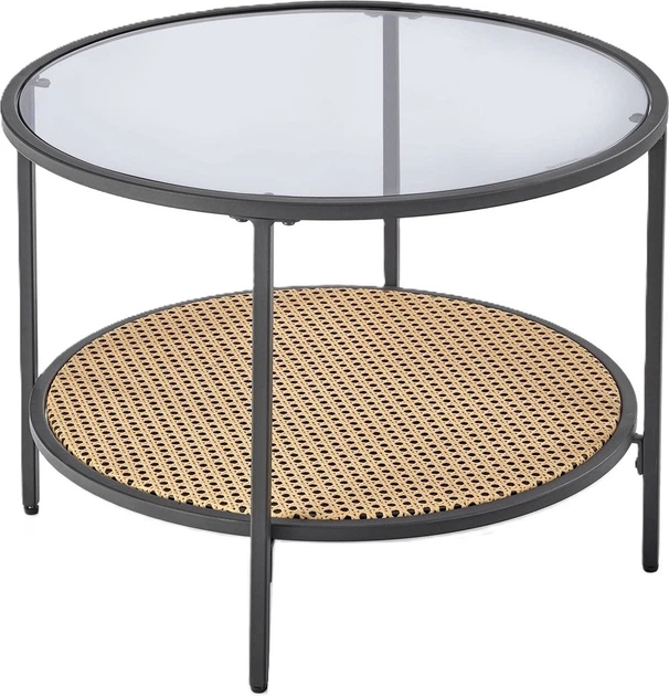 Цей сучасний журнальний столик вирізняється гармонійним поєднанням копченого скла та натуральних дерев'яних акцентів. Ідеально підходить для вітальні, кабінету, лофтового, скандинавського чи сучасного простору, додаючи інтер'єру легкості, елегантності та функціональності.